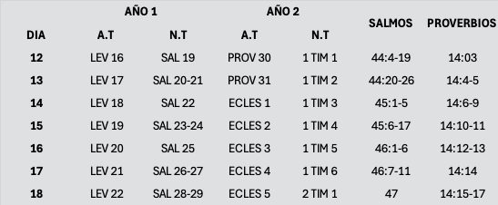 Es un plan de lectura de dos años que te permitirá leer el Nuevo Testamento y los Salmos una vez cada dos años.